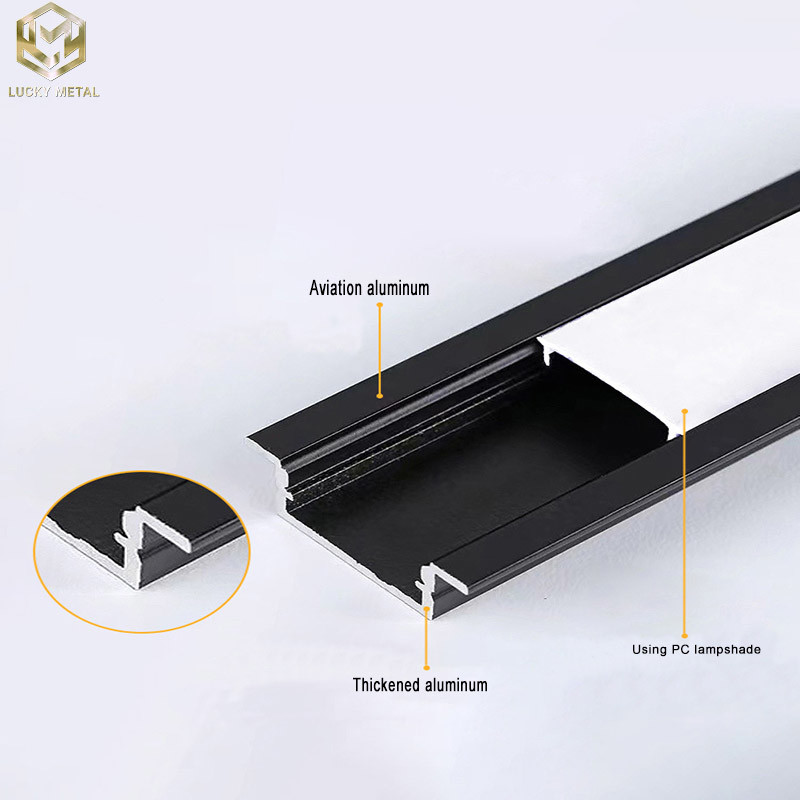 U Shape Alu Housing Channel Led Light Strip Profile is a type of aluminum extruded light strip profile commonly used in architectural lighting and decoration. It has a U-shaped aluminum housing channel, which can be used to install LED lights and other lighting devices, and can realize various Channel Led Light Strip Profile is a type of aluminum extruded light strip profile commonly used in architectural lighting and decoration. It has a U-shaped aluminum housing channel, which can be used to install LED lights and other lighting devices, and can realize various lighting effects. The recessed aluminum profile refers to the aluminum profile with a recessed design, which can be used to install LED lights in the interior space of the building, achieving a unique lighting effect. These two types of aluminum light strip profiles have the characteristics of aluminum material such as light weight, high conductivity, and good heat dissipation, and can be customized according to customer needs.