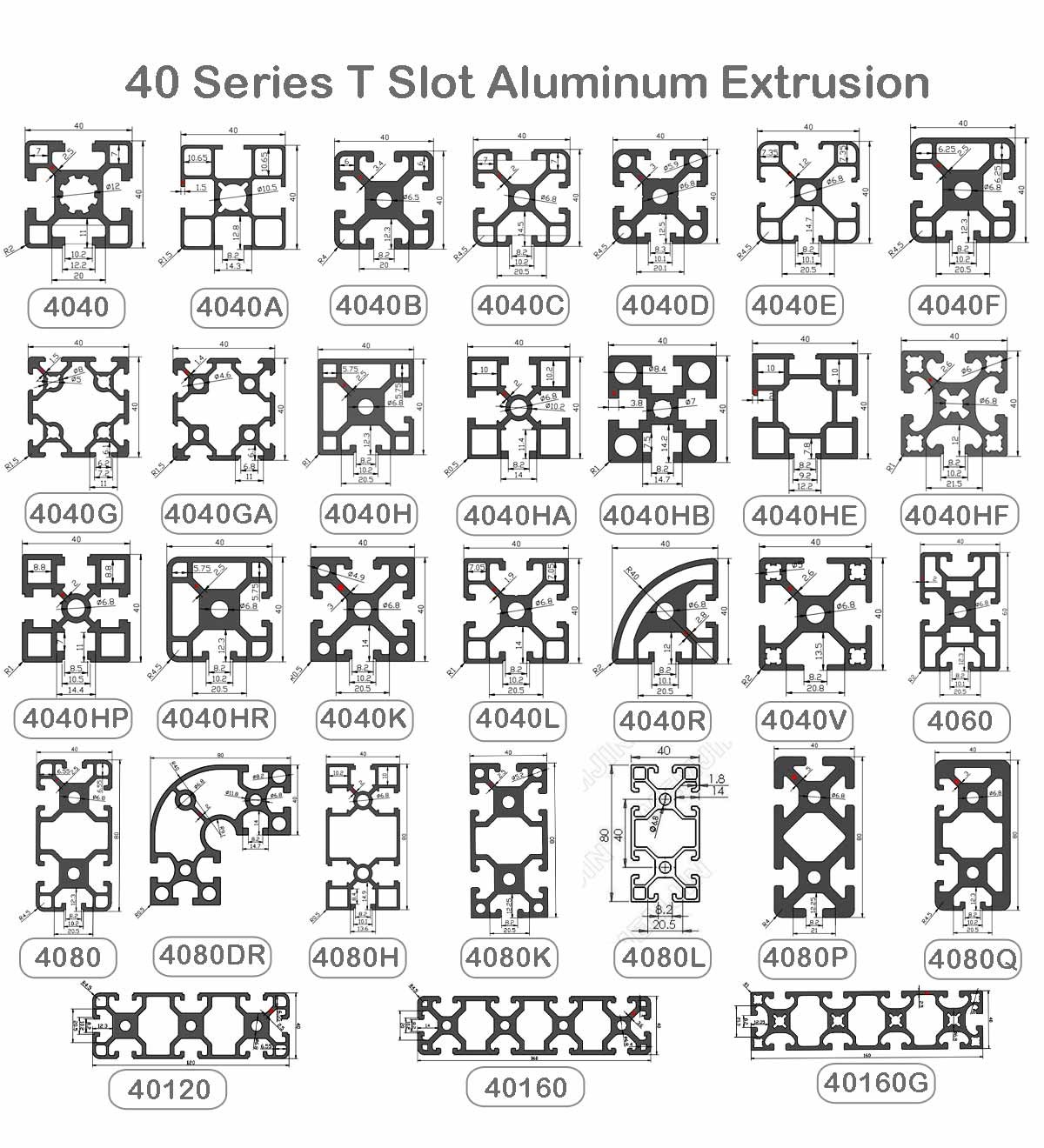 | Solicitud | Profile de aluminio de ranura de 40 T | Nombre | Profil de extrusión de aluminio de ranura T |