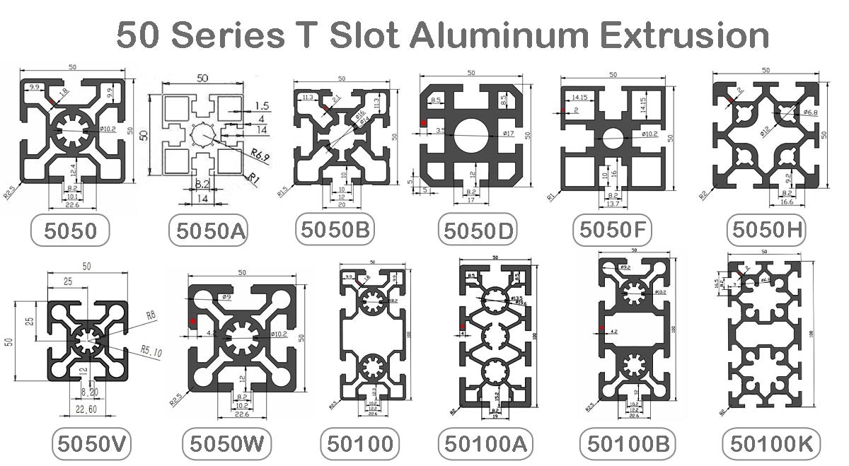 Cuadro de perfiles de ranura de aluminio T de extrusión industrial Serie 50 80 20